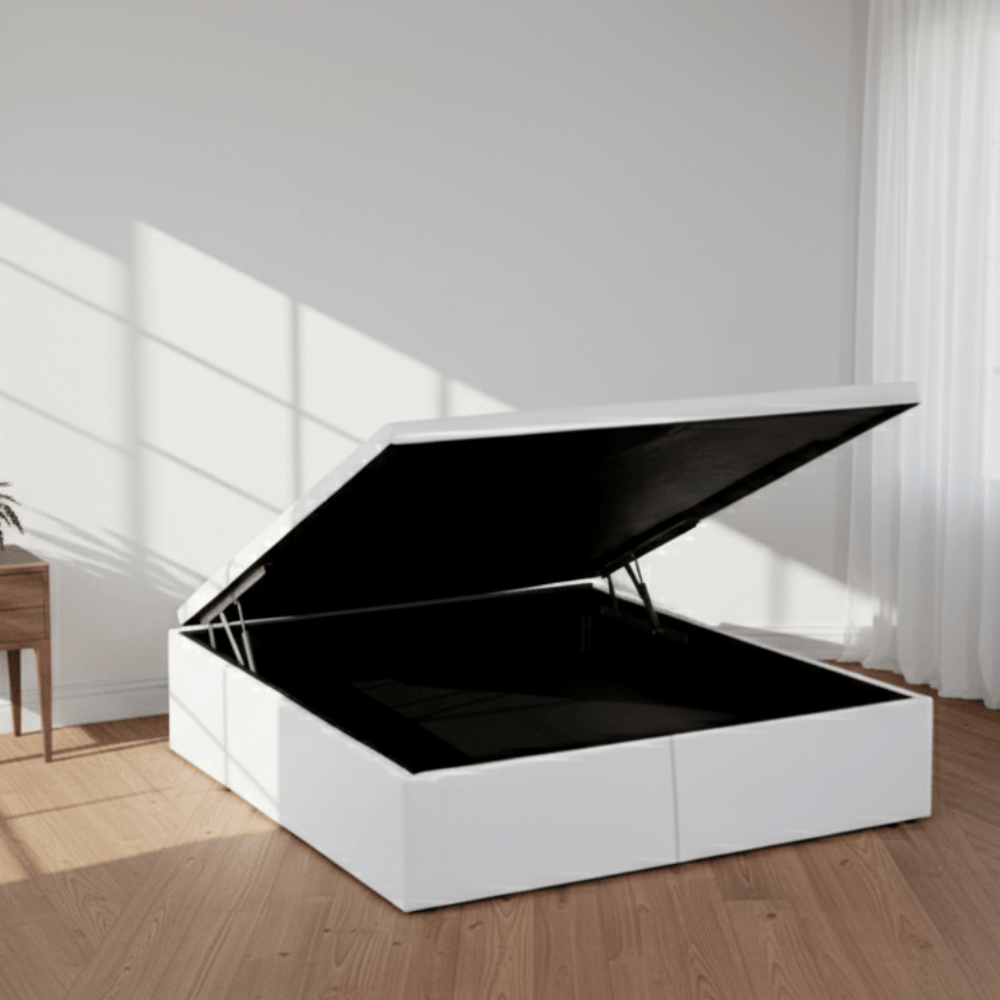 O baú integrado proporciona espaço extra para armazenar roupas de cama e outros itens, mantendo o quarto sempre organizado e funcional.