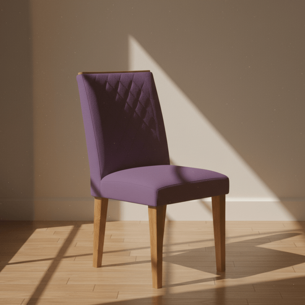 O assento conta com espuma D23 selada, enquanto o revestimento em tecido Sued Veludo Luxo oferece toque macio e acabamento elegante, conferindo brilho discreto à peça.