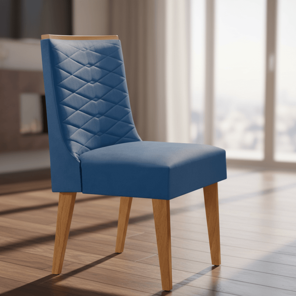 Cadeira Dafne - Imbuia com tecido Sued Azul