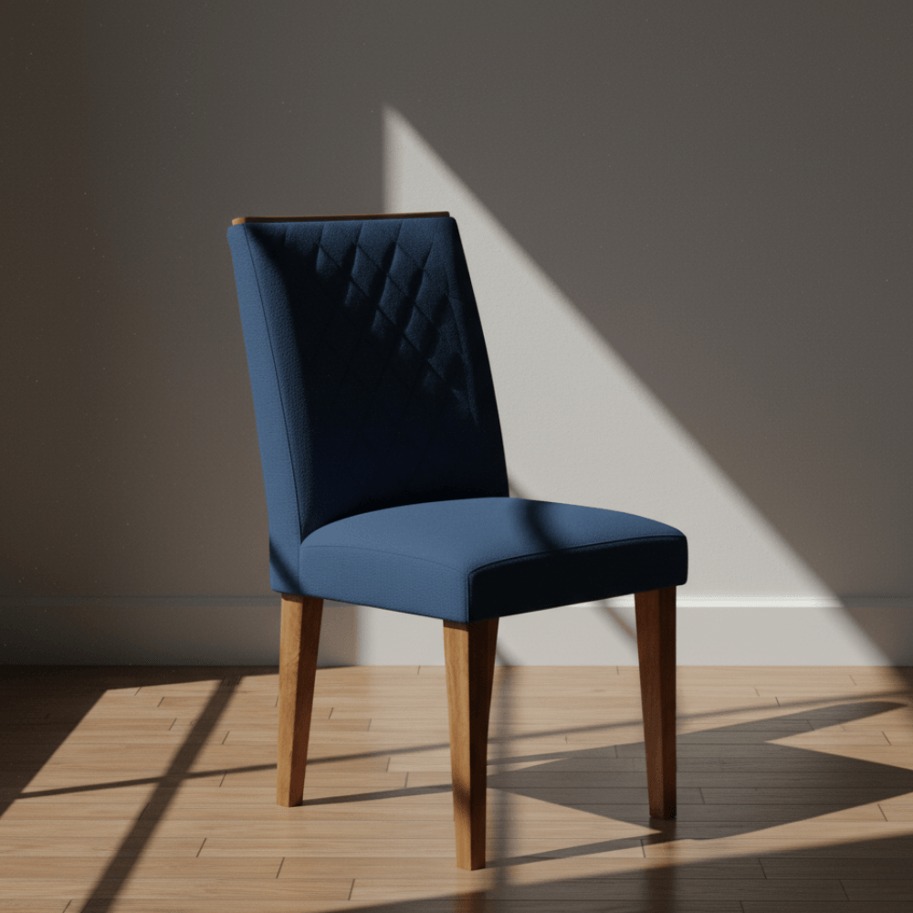 Cadeira Jasmim - Imbuia com Tecido Sued Azul