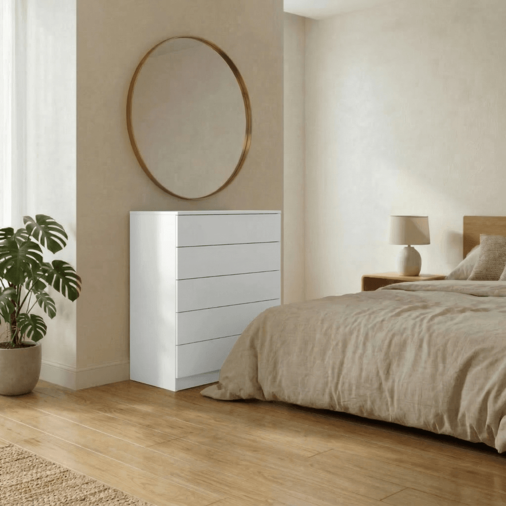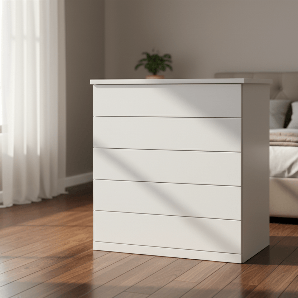 Possui 5 gavetas com corrediças telescópicas, garantindo abertura suave e acesso completo ao conteúdo interno, tornando o dia a dia mais prático.