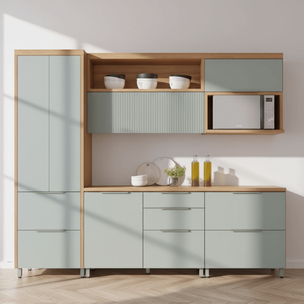 Cozinha Agnes Completa com Paneleiro - Nature com Verde