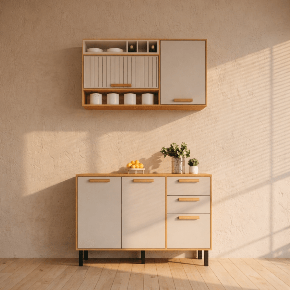Cozinha Garden - 2 Peças - Aéreo 120 e Balcão 120 - Cinamomo com Off-White