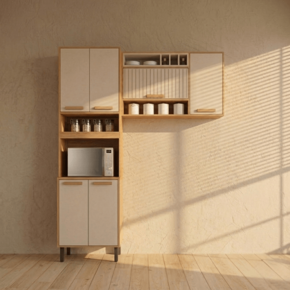 Cozinha Garden - 2 Peças - Aéreo 120 e Paneleiro - Cinamomo com Off-White