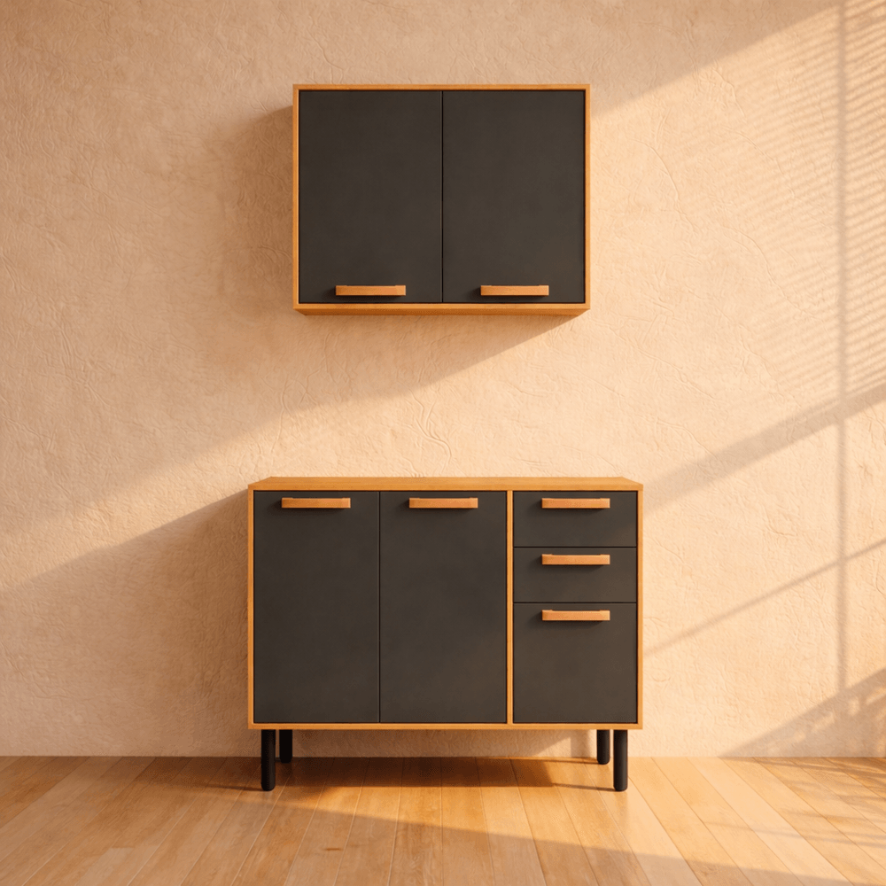 Cozinha Garden - 2 Peças - Aéreo 80 e Balcão 120 - Cinamomo com Grafite