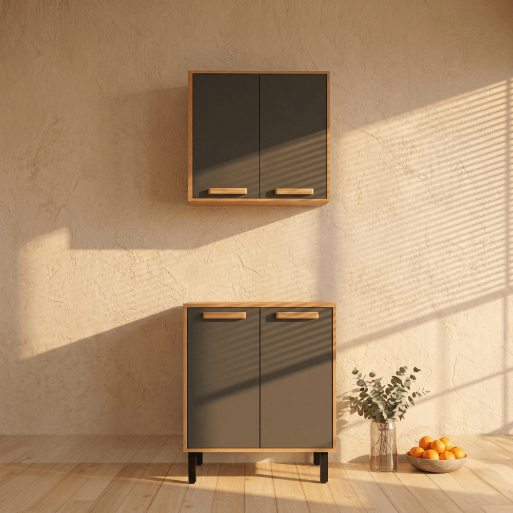 Cozinha Garden - 2 Peças - Balcão 80 e Balcão 80 - Cinamomo com Grafite