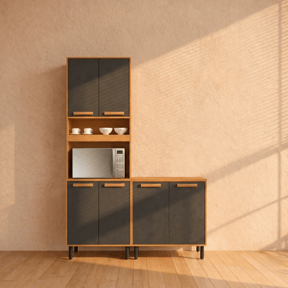 Cozinha Garden - 2 Peças - Paneleiro e Balcão 80 - Cinamomo com Grafite