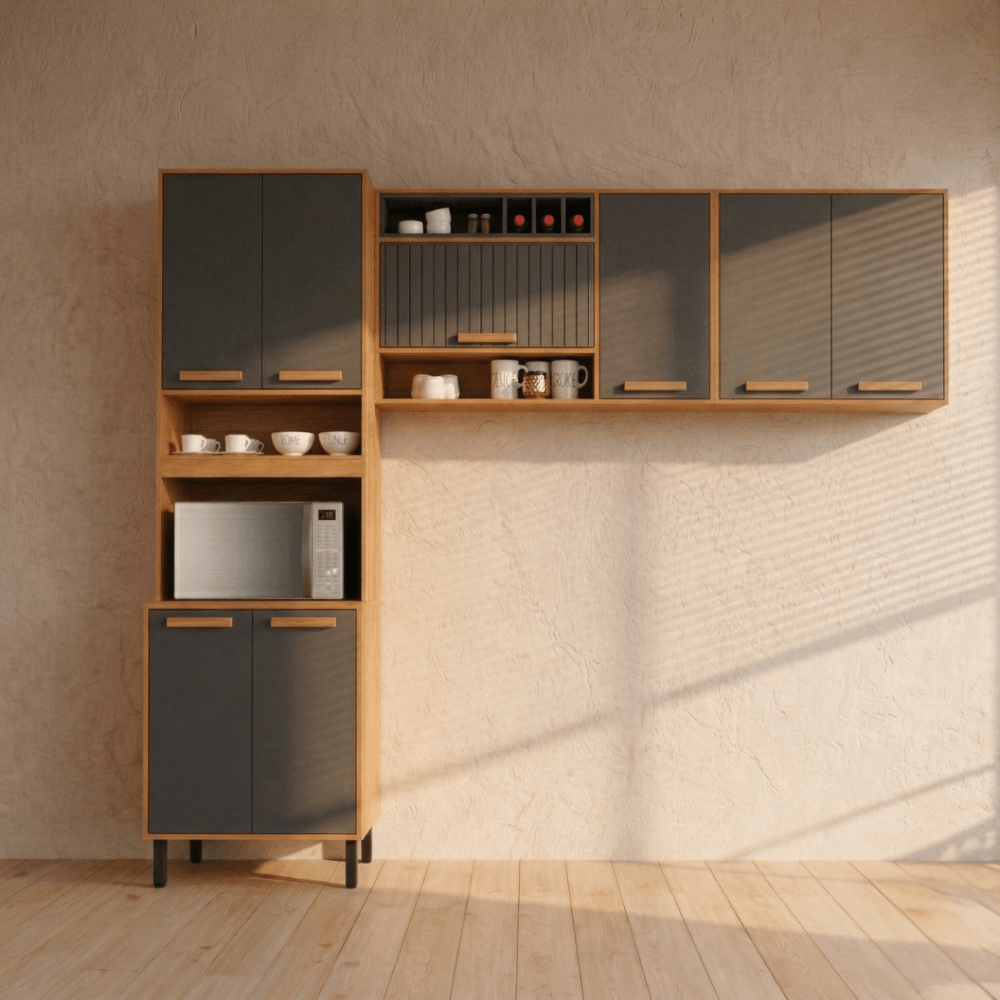 Cozinha Garden - 3 Peças - Aéreo 80, Aéreo 120 e Paneleiro - Cinamomo com Grafite