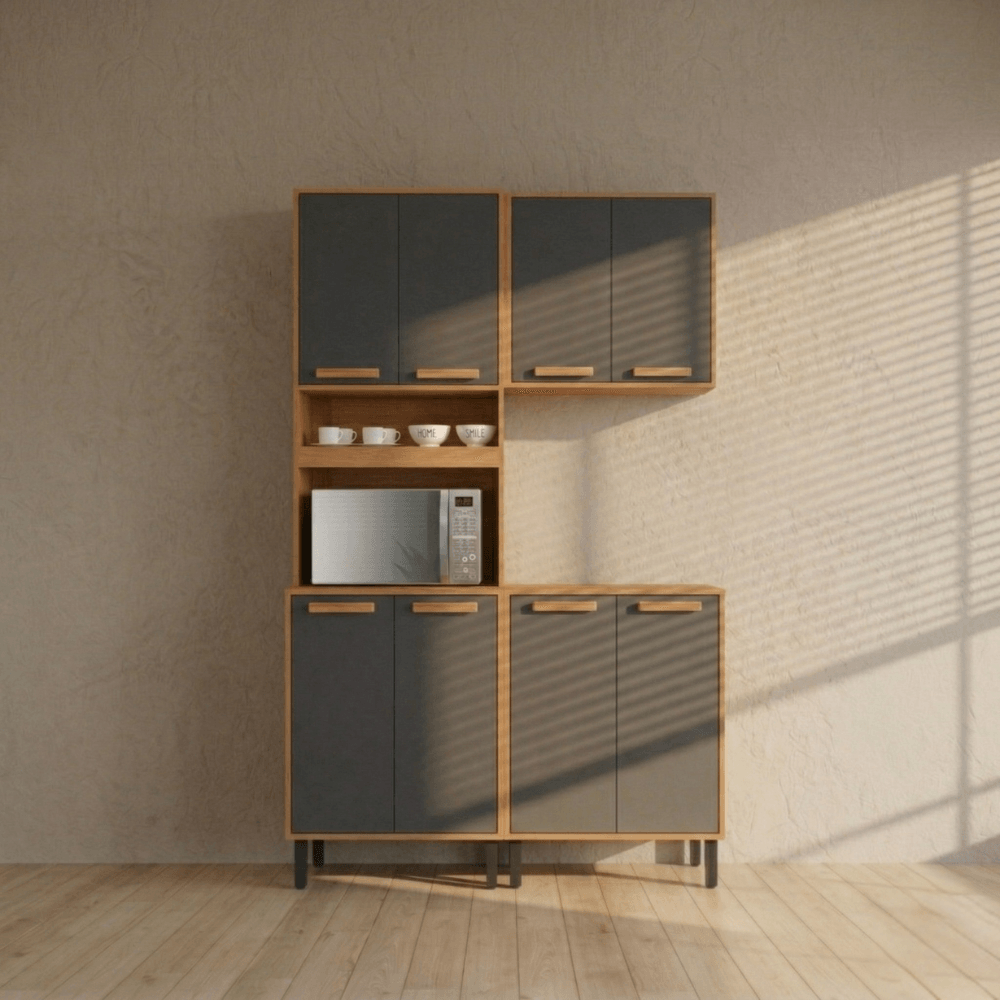 Cozinha Garden - 3 Peças - Aéreo 80, Balcão 80 e Paneleiro - Cinamomo com Grafite