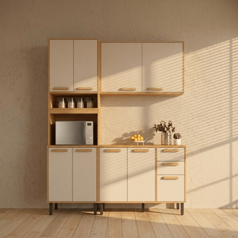 Cozinha Garden - 3 Peças - Aéreo 80, Paneleiro e Balcão 120 - Cinamomo com Off-White