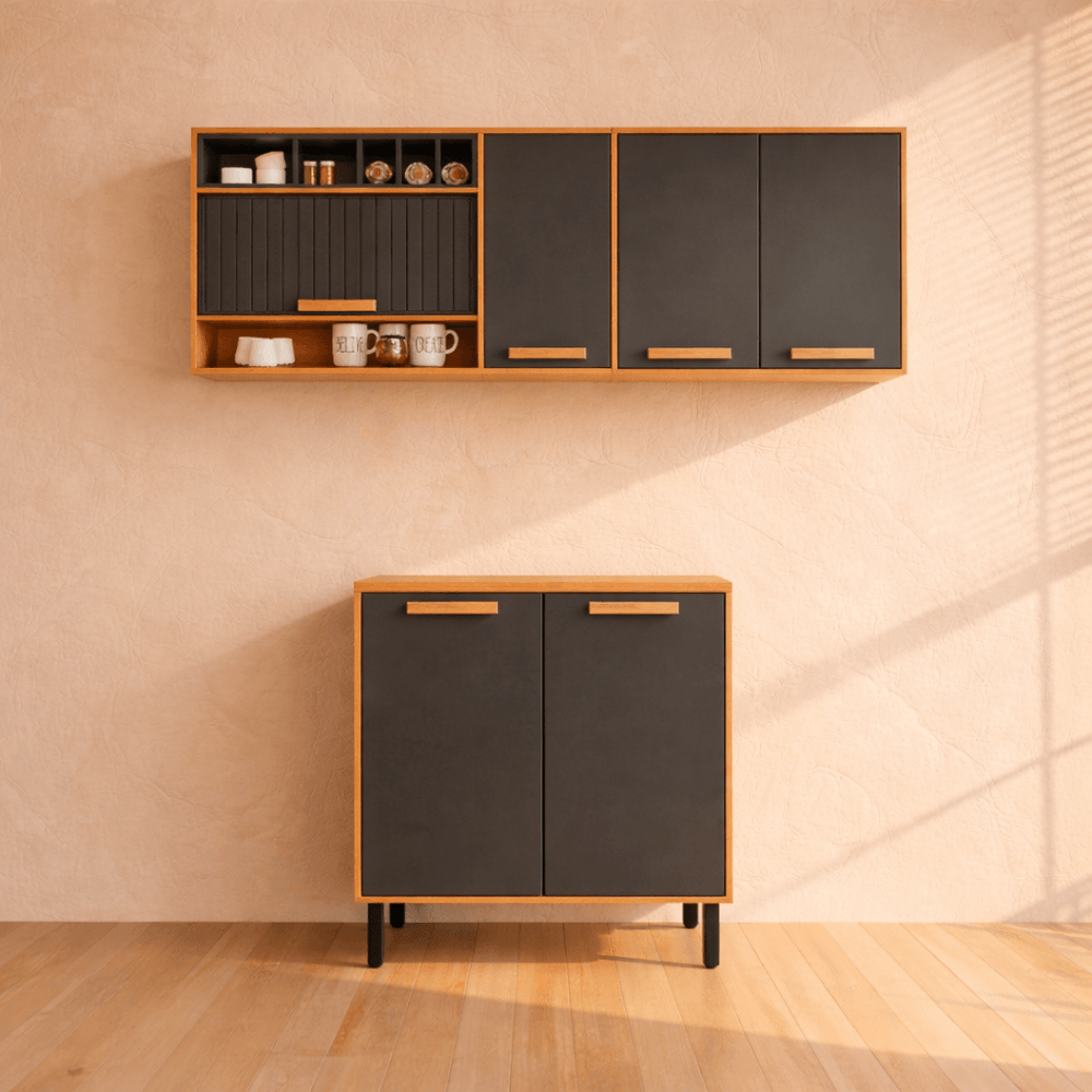Cozinha Garden - 3 Peças - Balcão 80, Aéreo 80 e Aéreo 120 - Cinamomo com Grafite - Cozinha Garden - 3 Peças - Balcão 80, Aéreo 80 e Aéreo 120 - Cinamomo com Off-White