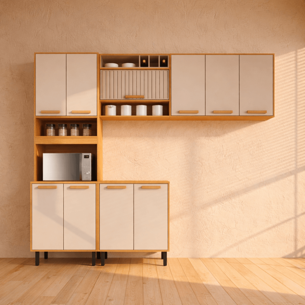 Cozinha Garden - 4 Peças - Paneleiro, Aéreo 120, Aéreo 80 e Balcão 80 - Cinamomo com Off-White