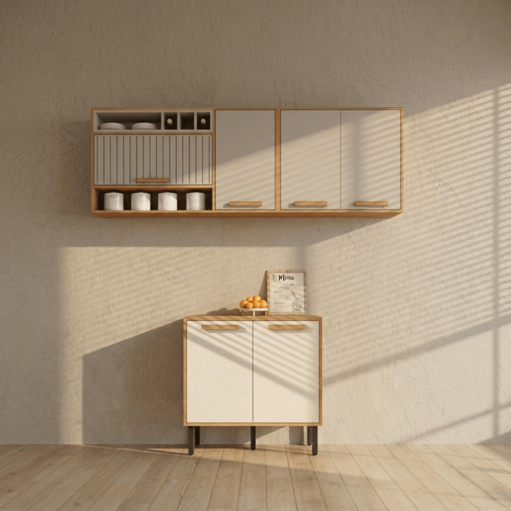 Cozinha Garden - 3 Peças - Balcão 80, Aéreo 80 e Aéreo 120 - Cinamomo com Off-White