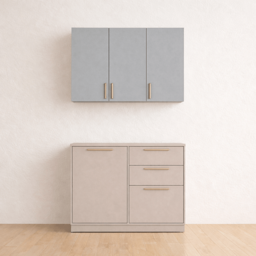Cozinha Pérola - 2 Peças - Aéreo 120 e Balcão 120 - Fendi com Gris