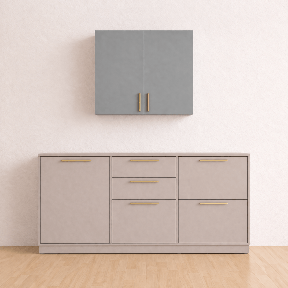 Cozinha Pérola - 3 Peças - Aéreo 80, Balcão 120 e Balcão 80 - Fendi com Gris