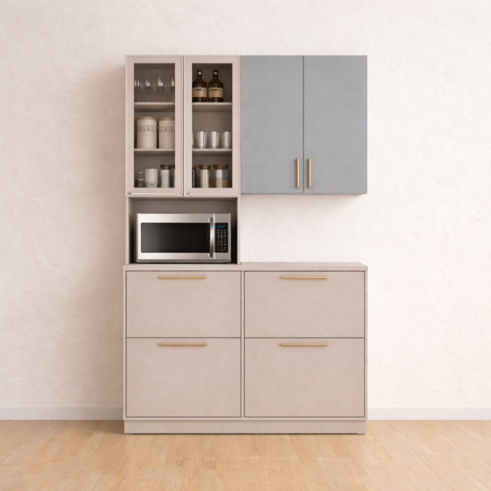 Cozinha Pérola 3 Peças - Aéreo 80, Balcão 80 e Paneleiro 70 - Fendi com Gris