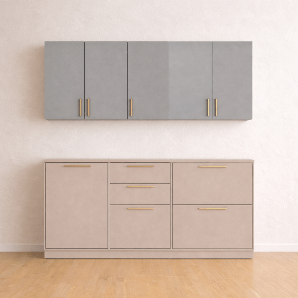 Cozinha Pérola 4 Peças - Aéreo 80, Aéreo 120, Balcão 120 e Balcão 80 - Fendi com Gris