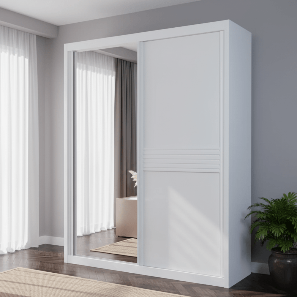 Guarda-Roupa Japão 100% MDF 2 portas com espelho - Branco