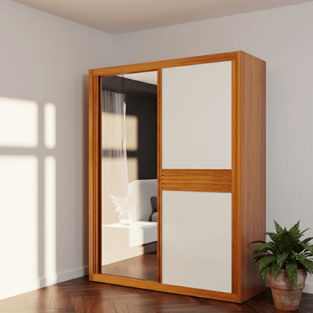 Guarda-Roupa Japão 100% MDF 2 portas com espelho - Naturale com Offwhite - Guarda-Roupa Japão 100% MDF 2 portas com espelho - Nature com Offwhite