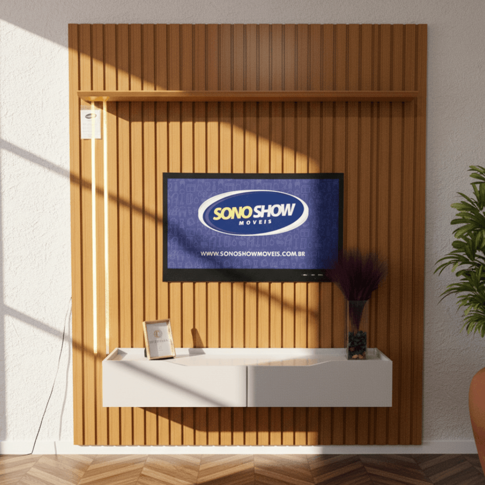 A ampla prateleira de 25 mm com borda chanfrada é ideal para exibir objetos decorativos, livros ou aparelhos eletrônicos, valorizando cada detalhe do seu espaço. Compatível com TVs de até 75 polegadas, proporciona uma experiência completa de entretenimento para toda a família.