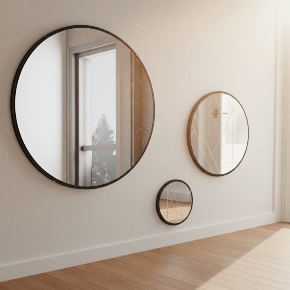 As peças possuem discos de MDF de 12 mm com acabamento em impressão UV, garantindo durabilidade e um visual refinado. Os três tamanhos diferentes permitem composições criativas, seja alinhados, em sobreposição ou de forma assimétrica, adaptando-se ao seu estilo e à proposta do ambiente.