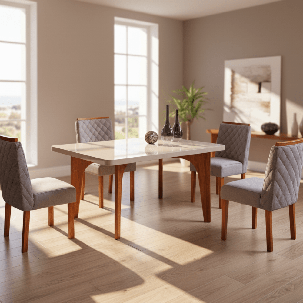 Mesa de Jantar Dara Offwhite com 4 Cadeiras - Naturale 3028