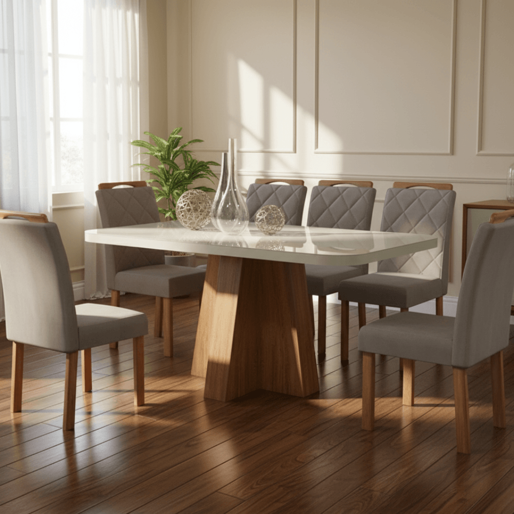 Mesa de Jantar Luisa 160cm Vidro Offwhite + 6 Cadeiras 3010