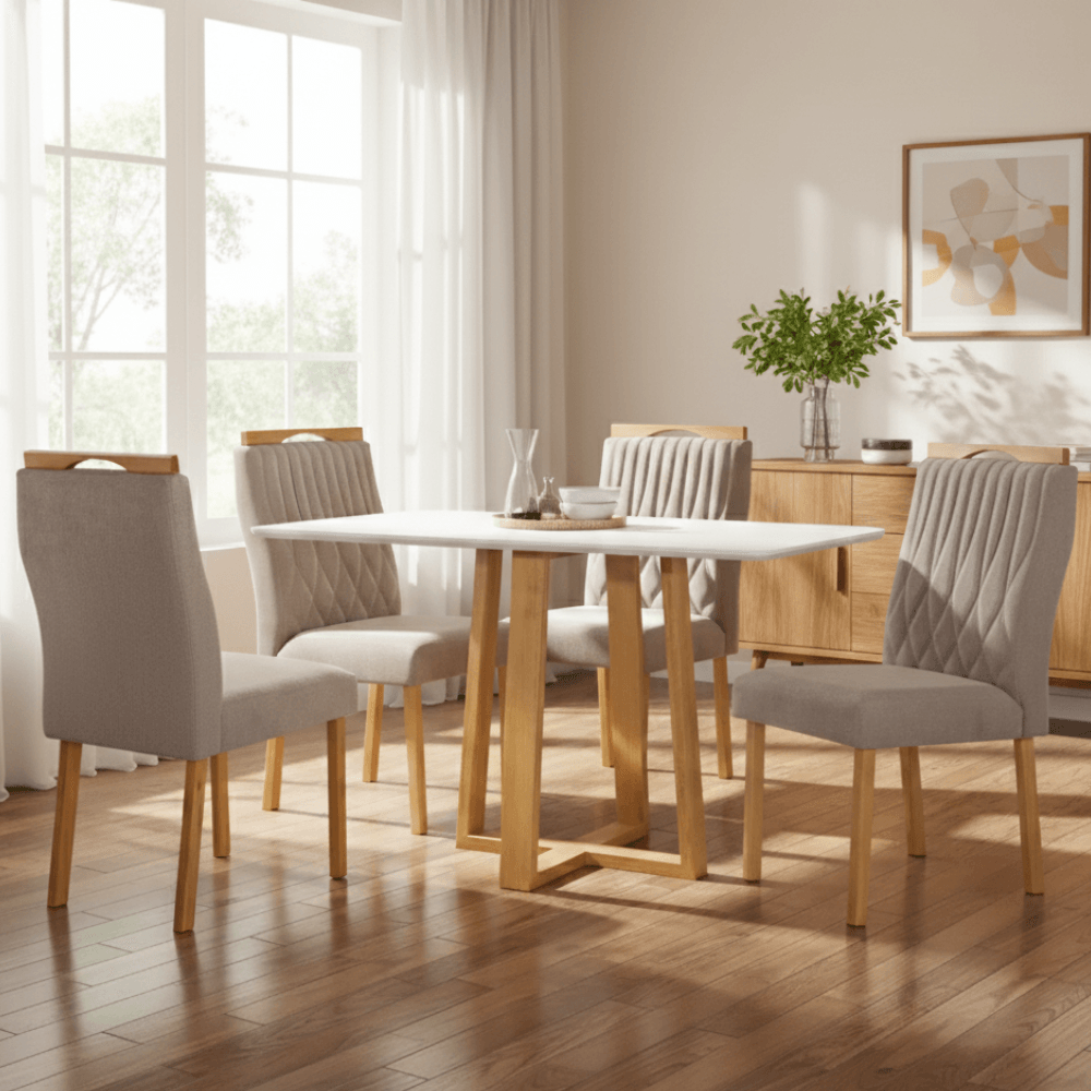 Mesa de Jantar Safira 120 cm Offwhite + 4 Cadeiras 506 Avelã