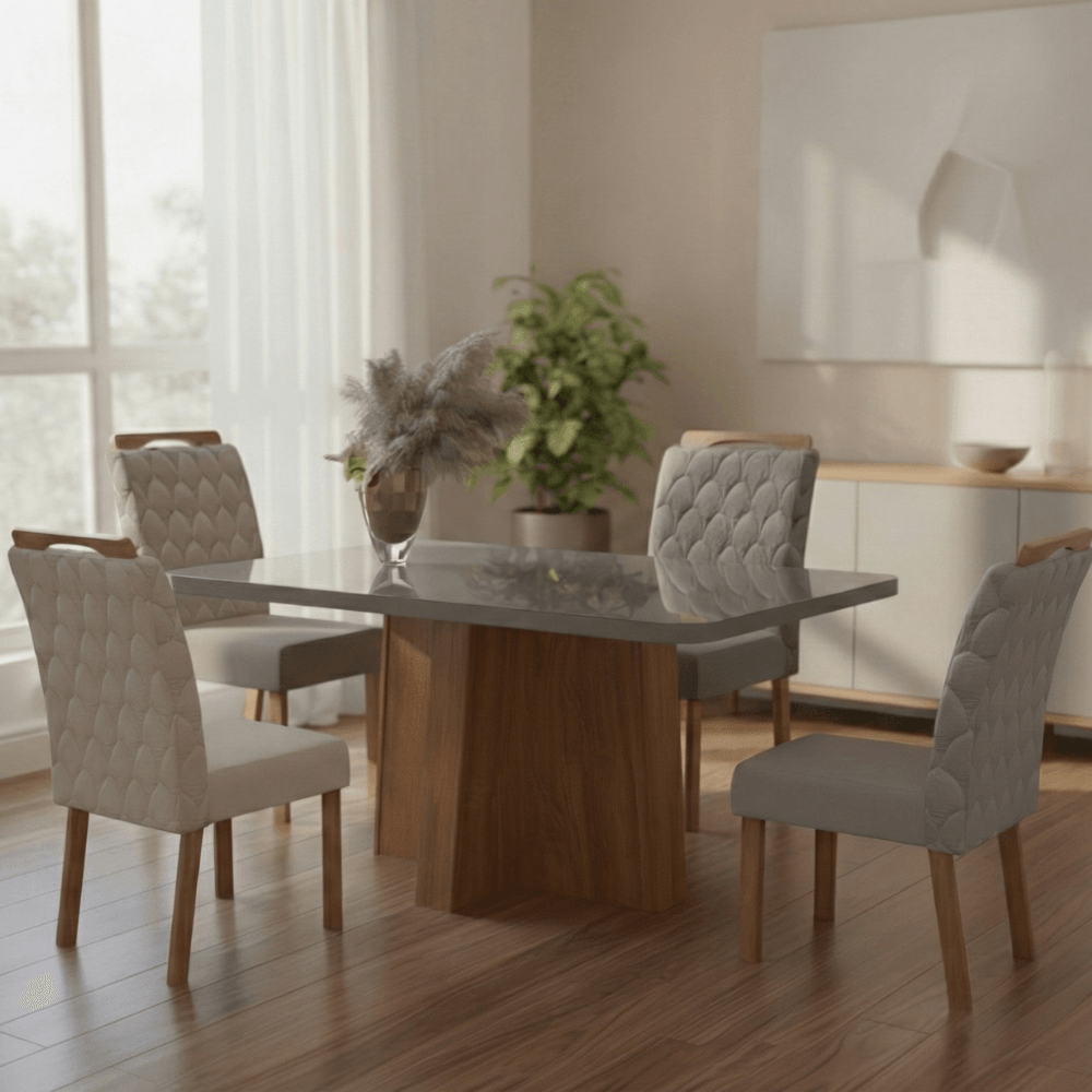 • Capacidade para 4 lugares: Ideal para ambientes menores, sem perder a elegância.