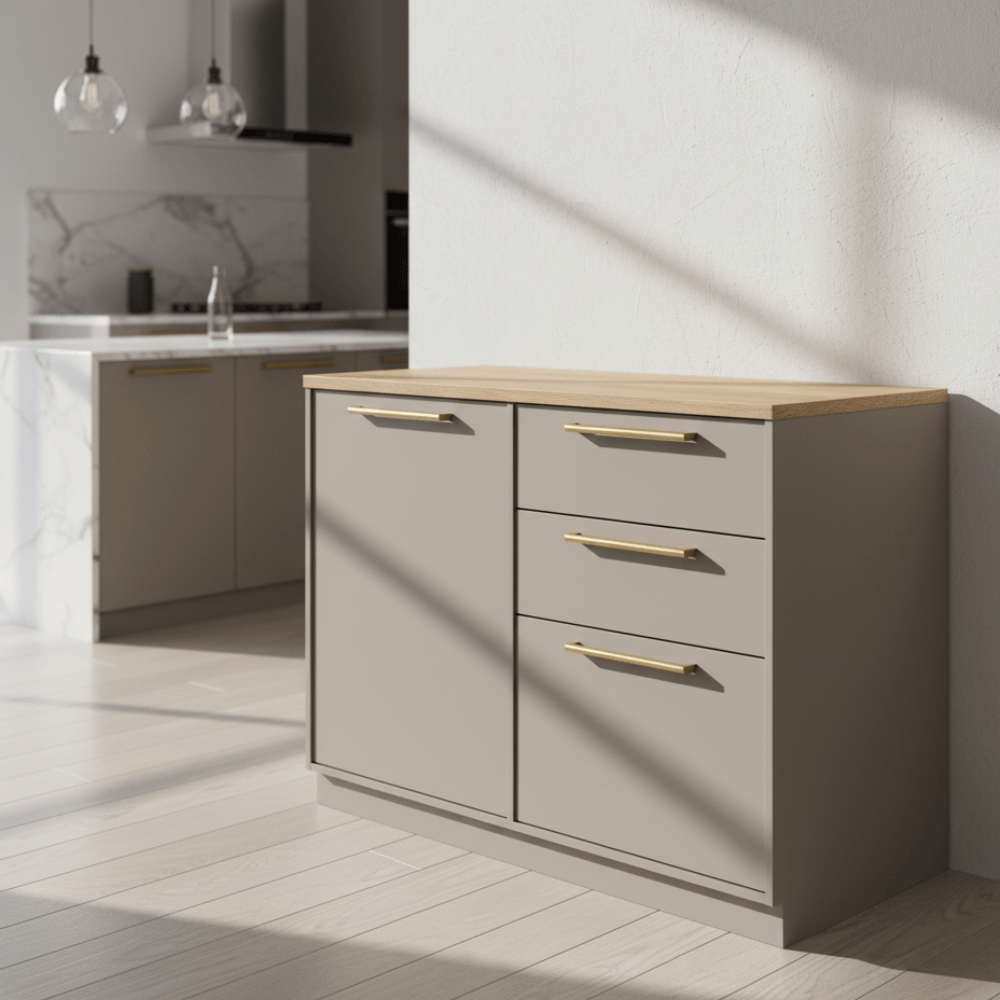 Módulo de Cozinha Balcão Perola - 120 cm 1 porta e 3 gavetas com tampo- Fendii