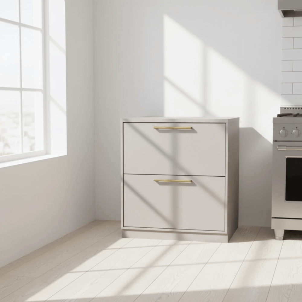 Produzido 100% em MDF, o balcão oferece alta durabilidade e resistência à umidade. As dobradiças de 35mm com sistema Slow Motion e as corrediças telescópicas garantem abertura e fechamento suaves e silenciosos. O modelo conta ainda com divisor de talheres removível, facilitando a organização, e rodapés em PVC de 7,5cm, que contribuem para a proteção e estabilidade do móvel.