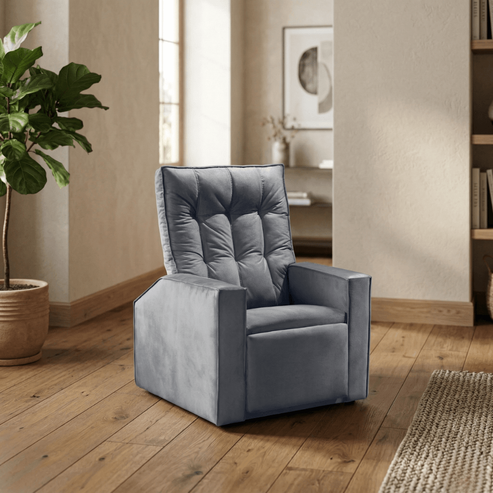 O assento é produzido com espuma D-33 e conta com molas de aço tipo “S”, que auxiliam na sustentação e no suporte durante o uso. O encosto é composto por flocos de espuma e fibra de poliéster siliconado, proporcionando maciez ao encostar. Os braços possuem espuma D-33, mantendo o padrão de conforto em toda a peça.