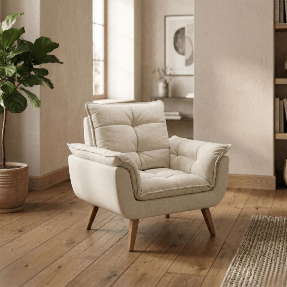 Revestida em tecido Sued Luxo, a poltrona oferece toque macio e agradável, garantindo bem-estar no uso diário.