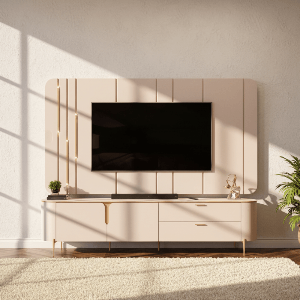 Rack com Painel Cristal para Tvs de até 75" - com LED - 100 % MDF - OffWhite