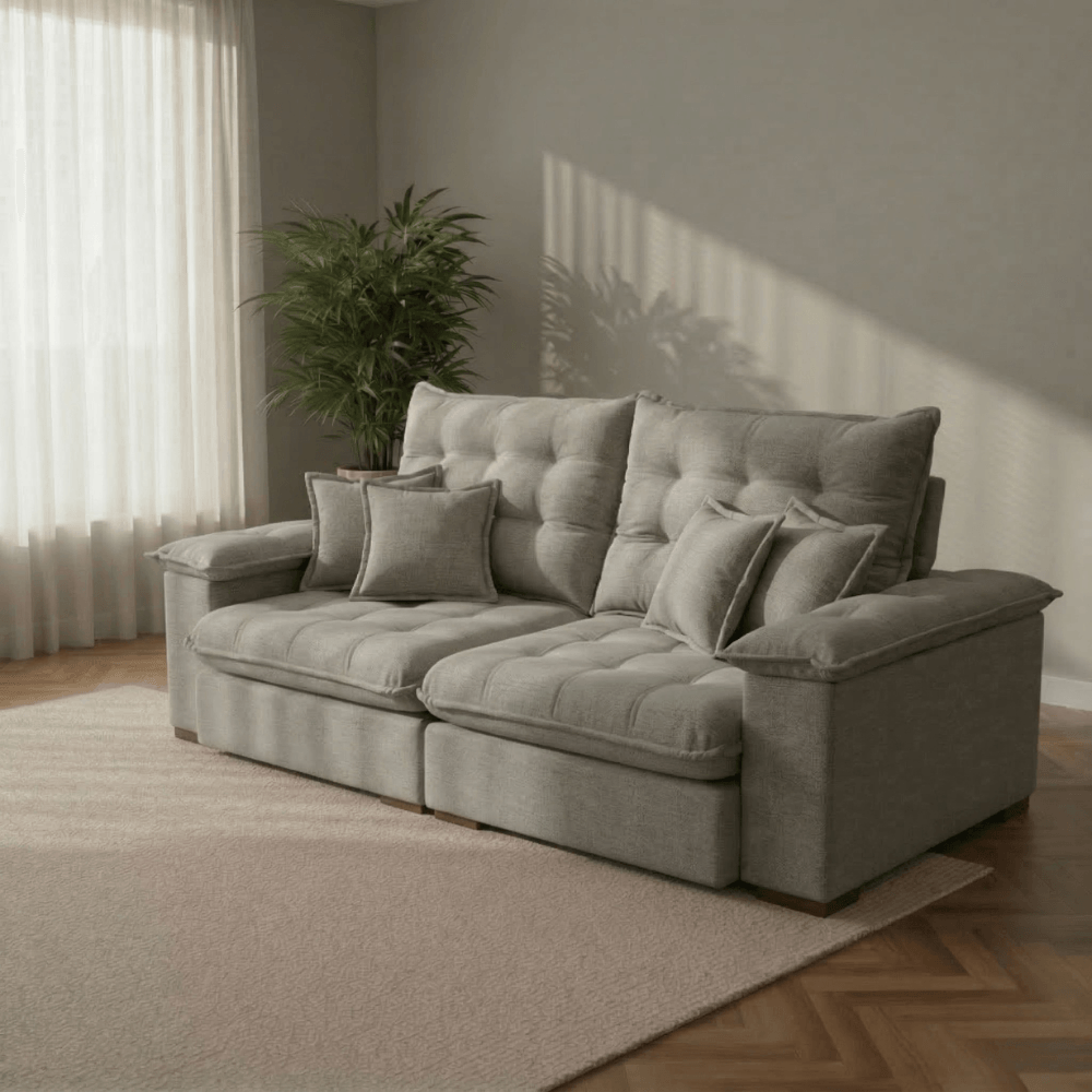 • Almofadas Decorativas Inclusas: 4 unidades que complementam o design e proporcionam versatilidade na composição do ambiente.