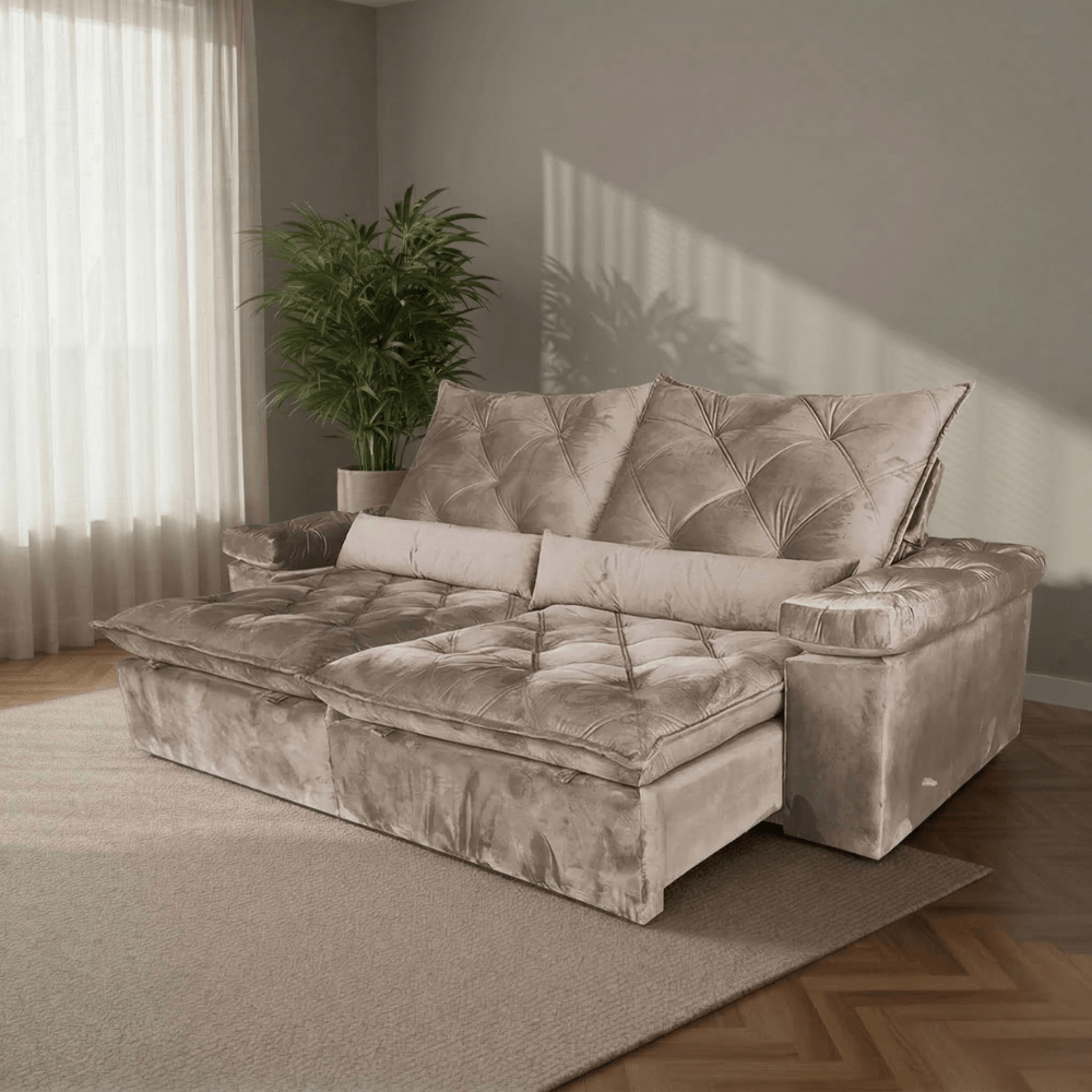 Os assentos são retráteis e possuem sistema multi molas, com molas bonnel e molas pocket ensacadas entrelaçadas com percintas elásticas, além de espuma HR-33 e manta de silicone, que contribuem para conforto e maciez. O modelo possui pillowtop de 20cm, camada extra de fibra aplicada sobre as almofadas do assento.