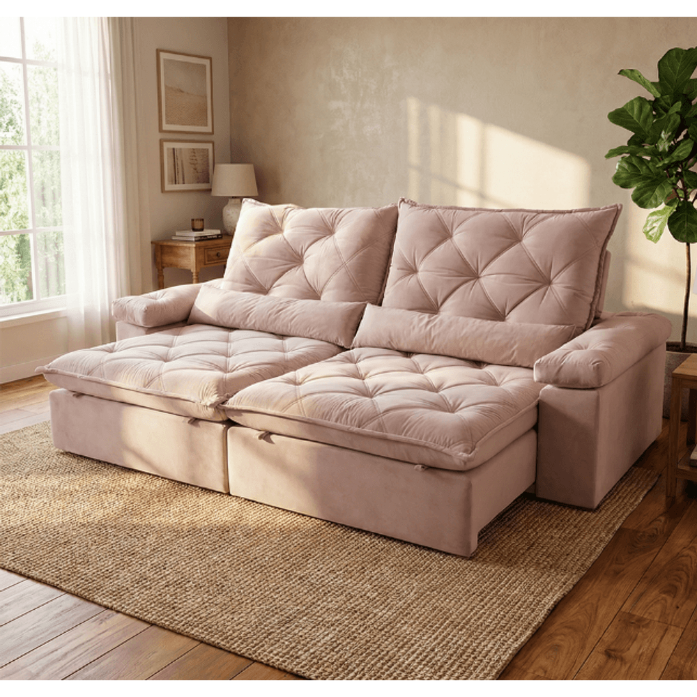 Sofá Hamburgo com Molas Ensacadas - Retrátil e Reclinável - Rosê - 255cm