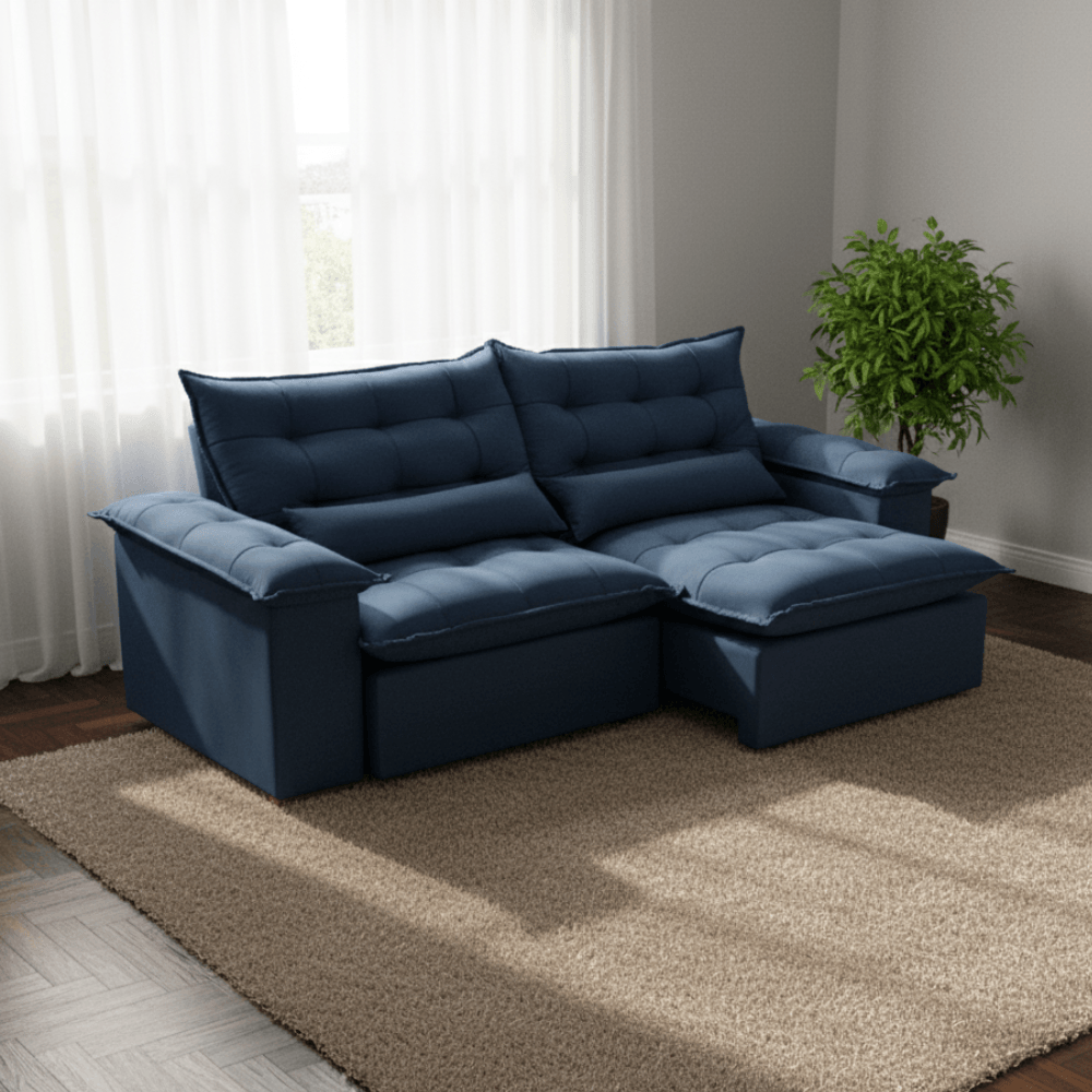 Sofá Olinda Retrátil - B024 Azul - com Molas Ensacadas - 250cm - Sofá Olinda Retrátil - Azul - com Molas Ensacadas - 250cm