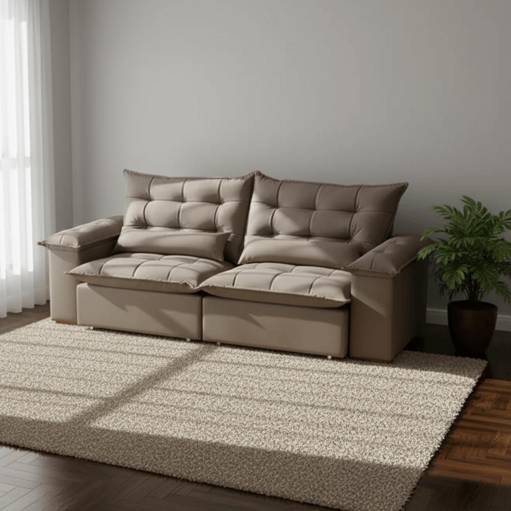 Sofá Olinda Retrátil - B002 Cinza - com Molas Ensacadas - 250cm